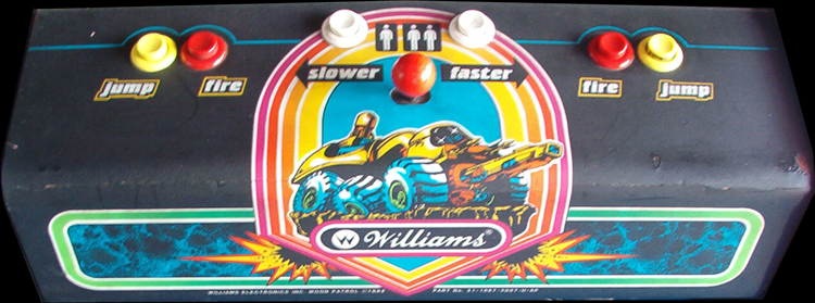 This cabinet is a scratch build. The object is to complete the varying legs of the patrol course as quickly as you can while . More titles on the way! Moon patrol on the arcade. Moon patrol side art arcade cabinet artwork graphics decals.